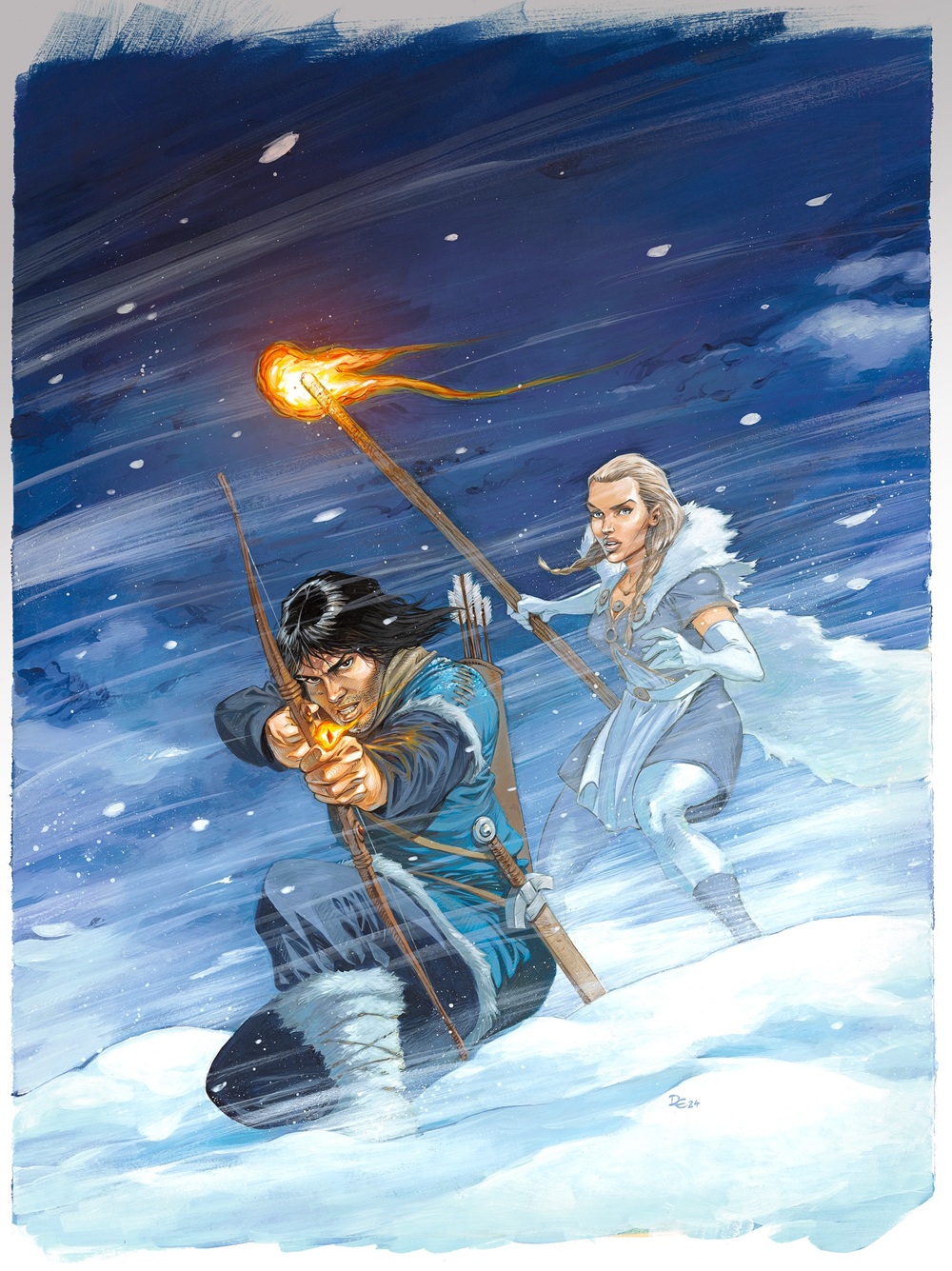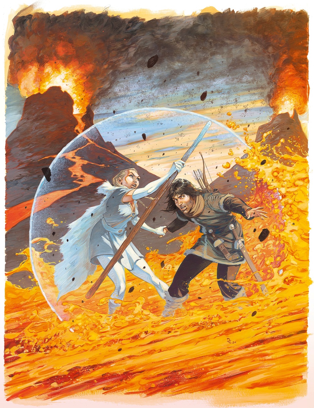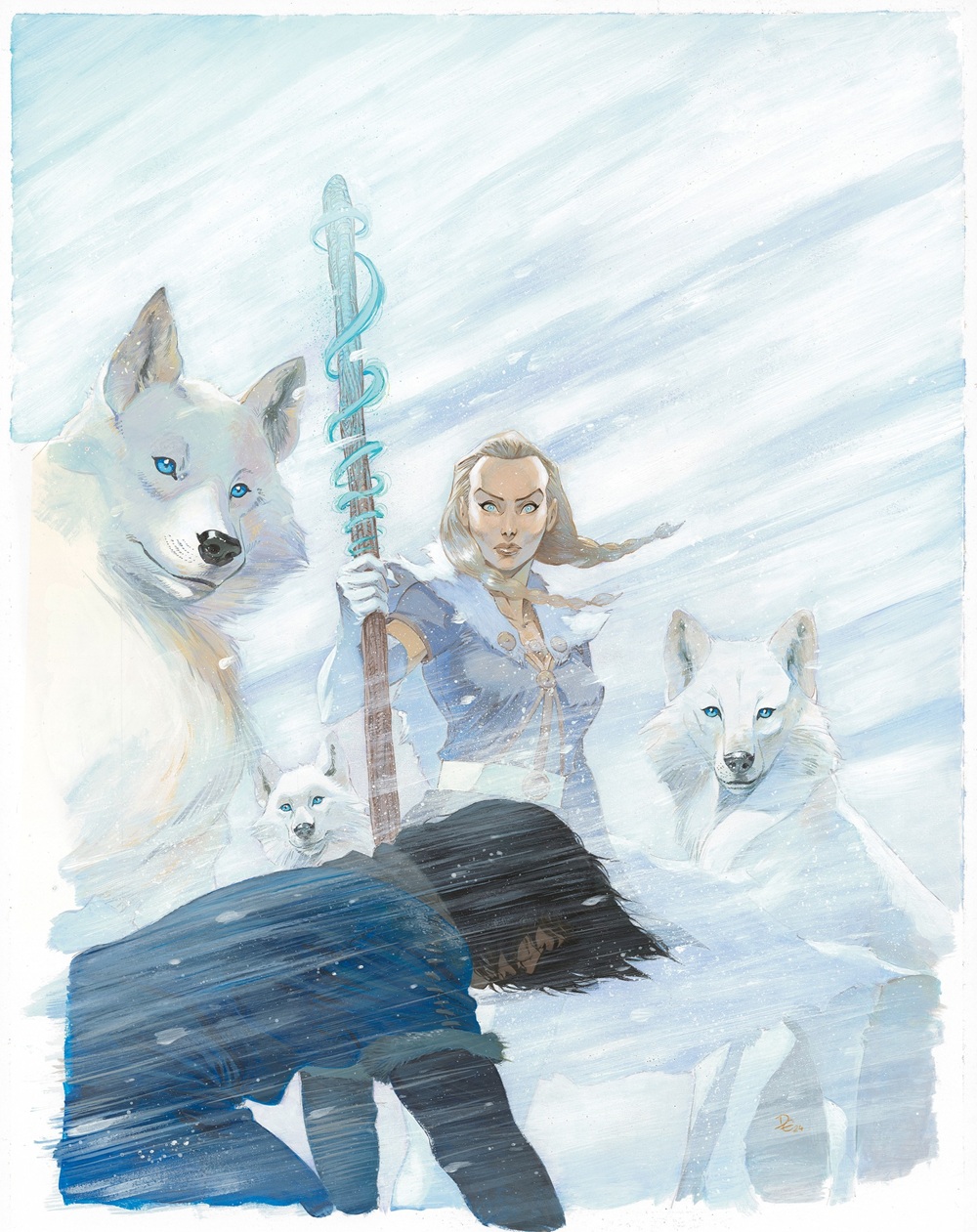 Deuxième actualité pour David Etien : il nous dévoile quelques pages et projets de couverture (acrylique sur format A3 ) de « son » Thorgal saga annoncé pour avril 2025. Il y aura deux couvertures alternatives pour l'édition courante, l'édition prestige sera celle du dragon, et enfin celle avec les loups n'a finalement pas été retenue.