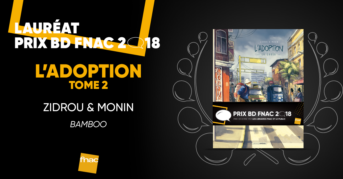 Le prix BD Fnac a été remis ce mardi 17 avril au tome 2 de la bande dessinée « L’adoption » de Zidrou et Monin (Grand Angle). L’album lauréat a été choisi parmi une sélection de 30 albums.