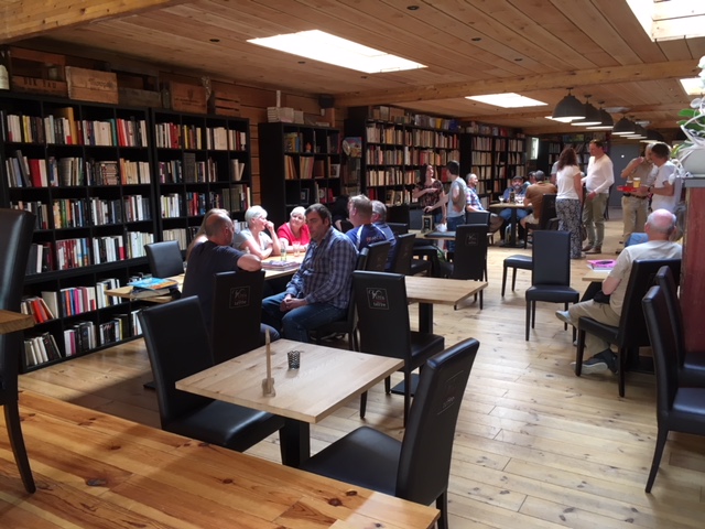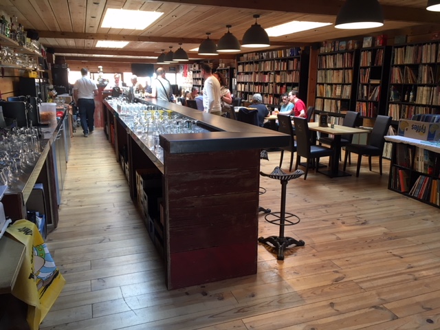 Ce fût aussi l’occasion pour nous d’aller enfin visiter le café littéraire que Philippe van Brussel a ouvert il y a maintenant 3 ans déjà et qui s’intitule « Vins (mille crus) sur la terre ». On peut y acheter des livres et BD neufs ou d'occasion, boire une bière ou déguster divers vins au verre car en plus d’être un amateur de bande dessinée, c’est aussi un sommelier hors pair et de nombreux vins sont donc proposés à la carte dans son établissement. On peut aussi régulièrement venir écouter des concerts.