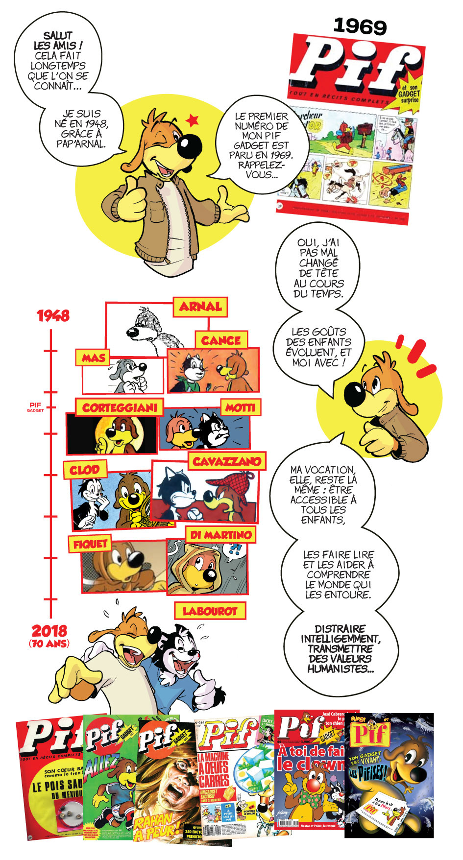 C’est en son sein notamment que furent lancés diverses BD cultes, telles Corto Maltese, Rahan, Placid et Muzo, Gai Luron, Léonard sans oublier évidemment les aventures de Pif (le chien) et d’Hercule (le chat).