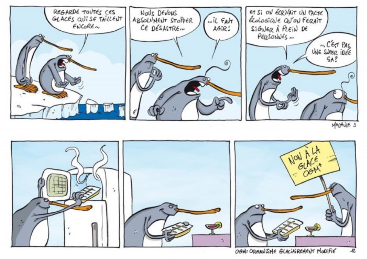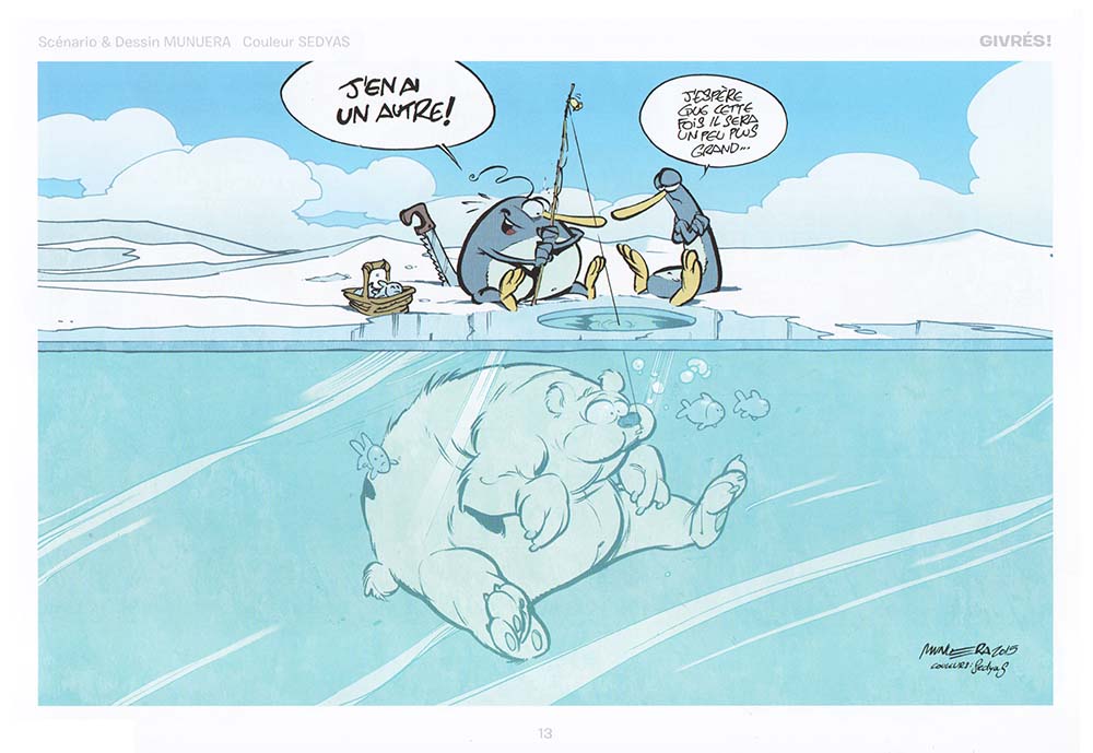Et si on oubliait cette chaleur accablante en essayant de faire travailler l'imagination. Quand douches glacées, ventilateurs et air conditionné ne suffisent plus, plongeons-nous par la BD dans un monde froid, blanc et merveilleusement rafraîchissant : celui des Givrés, une hilarante série signée Bruno Madaule parue dans "Spirou" et dont l'auteur a réédité la totalité des gags en trois volumes.