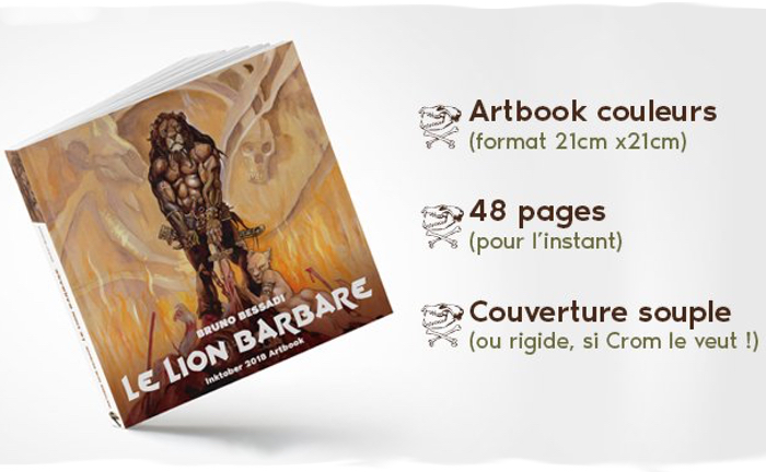 C’est donc sous la forme d’un Artbook carré de 21cm et de 48 pages (pour l’instant) tout en couleurs,qu’il souhaite mettre en valeur son travail dont la thématique commune est l’anthropomorphisme et l’Univers de « Conan le Barbare ».