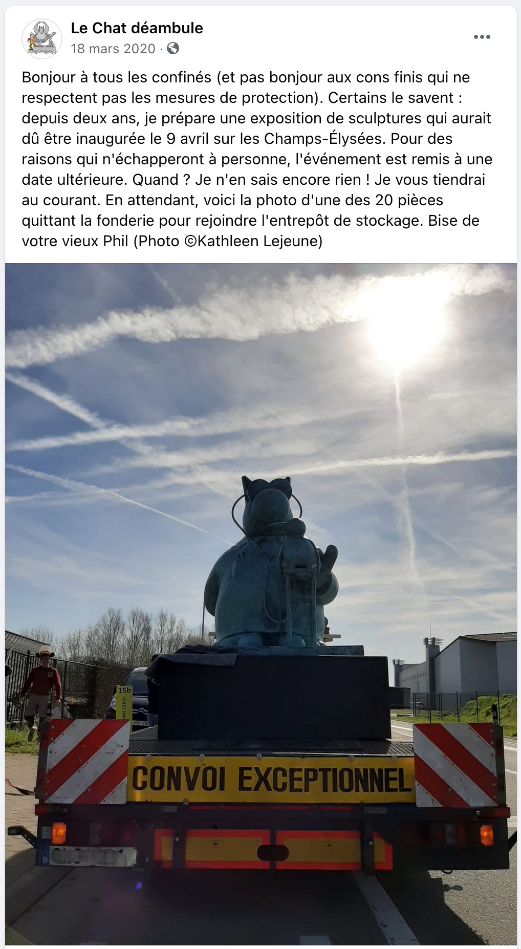 Cette expo "en plein air" était initialement programmée en Mars 2020... Pandémie oblige, elle a été bien vite mise à l'abri, comme on le voit sur ce message de son auteur: