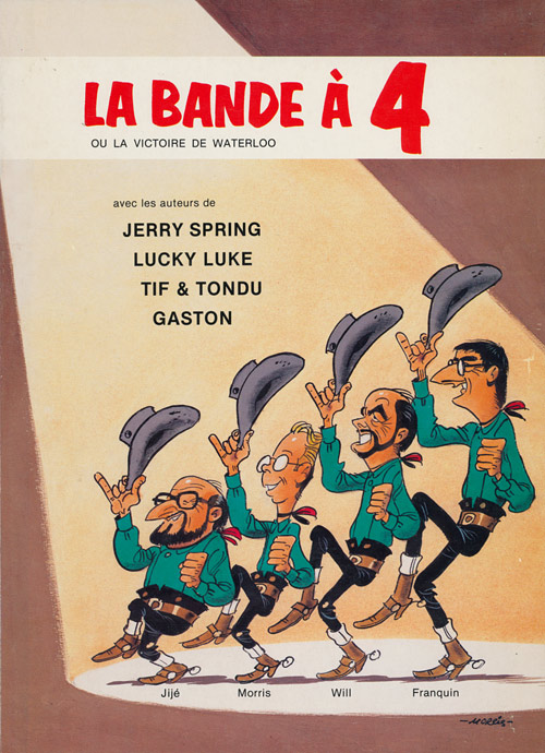 C’est en effet dans une villa du numéro 10 de l’avenue Belle-Vue à Waterloo qu’habitait Jijé et sa famille en 1946. Avec trois jeunes, Morris (Maurice de Bevere), Will (Willy Maltaite) et Franquin, les quatre dessinent ensemble dans la maison familiale de Joseph Gillain et s’amusent comme des fous. Jijé a 32 ans, dessine à l’époque Jean Valhardi, etil « coache » les trois jeunes âgés de 18 à 22 ans… Will était le premier assistant de Jijé, recueilli chez lui au début de la guerre alors qu’il n’avait encore que 14 ans ; Franquin et Morris arrivent un peu plus tard et ils s’installent tous dans la demeure de Jijé pour travailler en atelier de 1946 à juillet 1947.