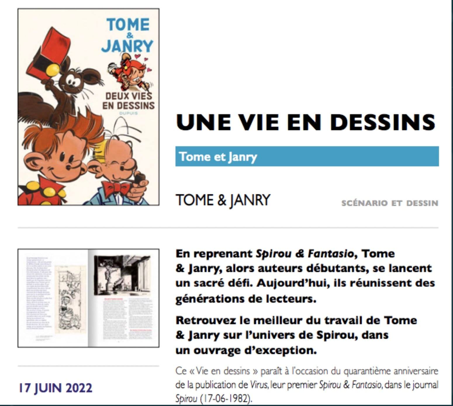 Après donc Yves Chaland, François Walthéry, Frank Pé, Victor Hubinon, Batem et Marcel Gotlib, le titre évolue en "Deux Vies en Dessins", pour l'entrée en scène du tandem Tome & Janry.