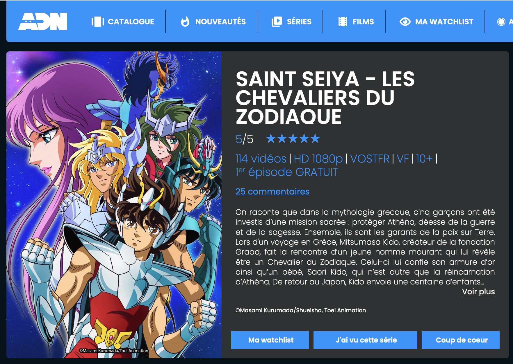 Dernière news Saint Seiya, sur l’Anime lui : le Streamer ADN a remporté le jackpot fin Avril: Les 114 épisodes (Sanctuaire/Asgard/Poséidon) sont ENFIN à nouveau disponibles sur nos petits écrans! Plus que l’exceptionnel arc d’Hadès, sans doute pour les grandes vacances…