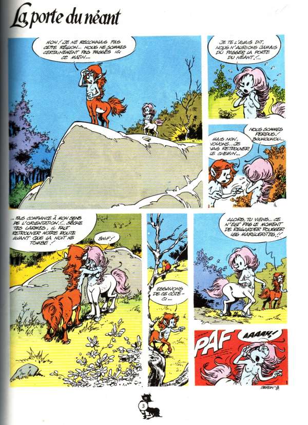 Pierre Seron est surtout connu pour sa série « Les Petits hommes » chez Dupuis. Il a aussi commis une variante 100% hard intitulée « Les petites femmes » ). Pourtant, l’auteur avait marqué de son empreinte (équestre) le monde de la BD avec une autre série: « Les Centaures »!