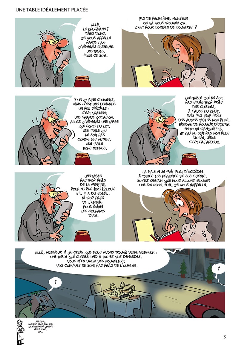 Un recueil de saynètes humoristiques sur la vie quotidienne dans un restaurant gastronomique. Une BD qui croque avec humour les situations cocasses et autres quiproquos vécus dans un haut lieu de la cuisine fine et inventive, tant par les clients que le personnel.
