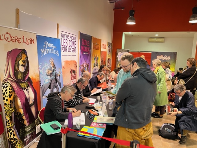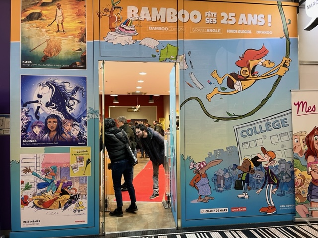 C’était aussi l’anniversaire de l’éditeur Bamboo qui fêtait ses 25 ans et qui pour l’occasion avait installé ses quartiers dans un local de la galerie du Champ de Mars, un peu plus loin que la librairie Cosmopolite. Très bonne idée pour les festivaliers souhaitant éviter la grosse foule des tentes et on soulignera l’excellente organisation de l’éditeur et de la librairie associée.
