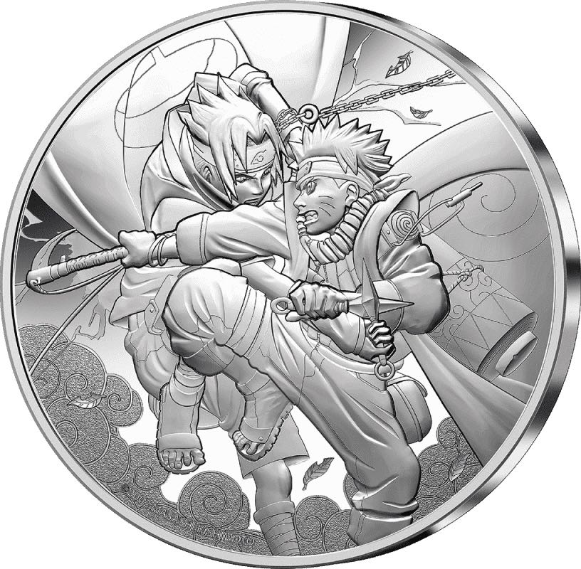 - 85€ pour une pièce en argent de 10€ représentant Naruto vs Sasuke;