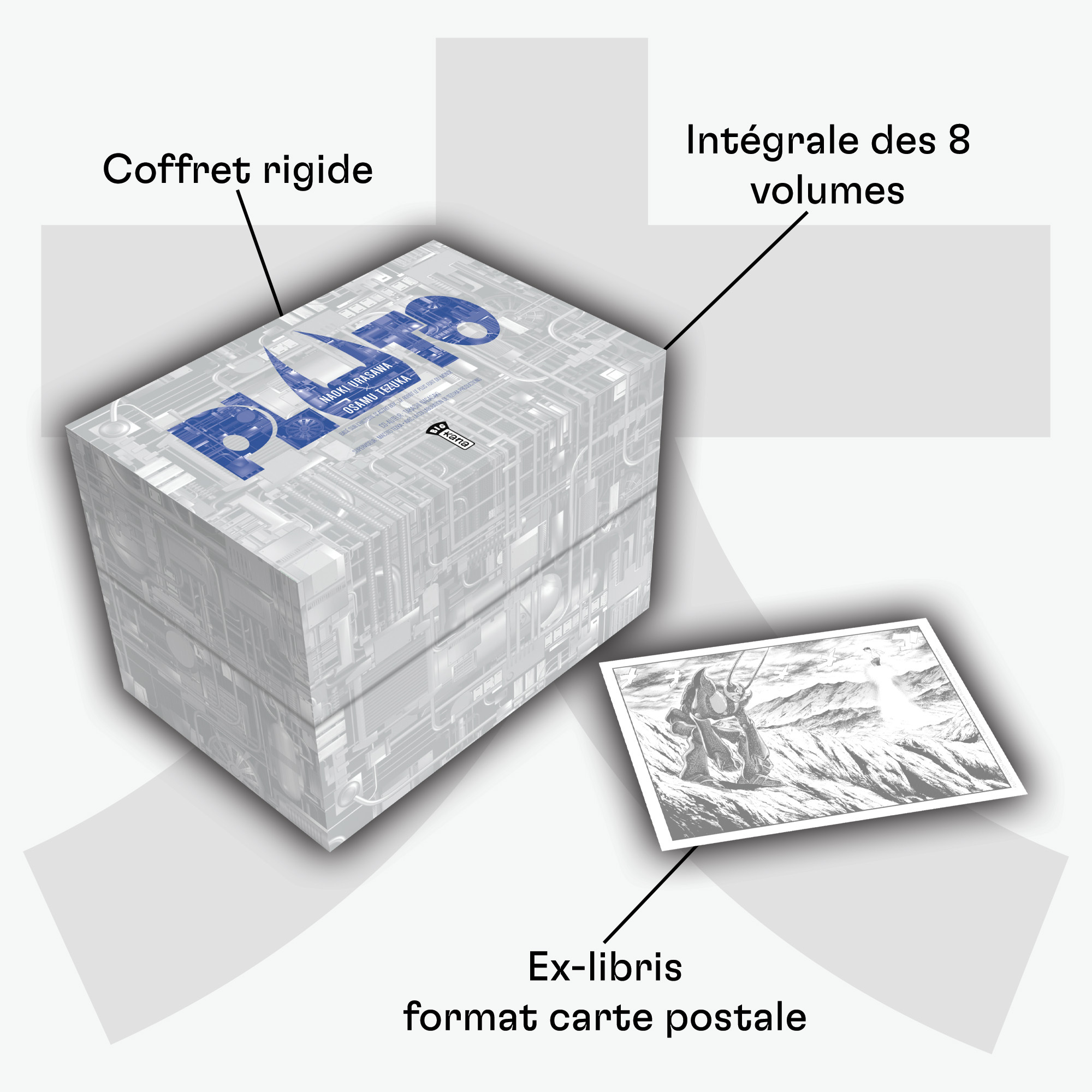 Le coffret contiendra les 8 volumes de la série pour une valeur de 64,9€ ainsi qu'un ex-libris au format carte postale.