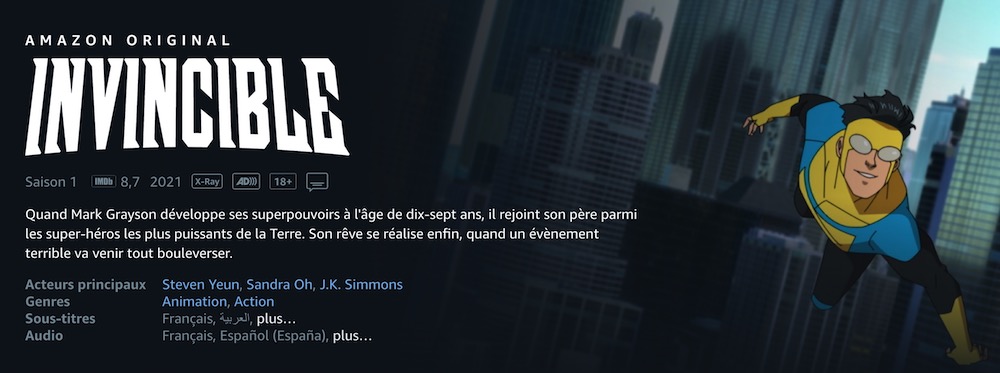 La série animée showrunnée par Robert Kirkman lui-même (il a commis un petit comics avec des zombies...), et produite par Seth Rogen et Evan Goldberg (en autres), a en effet été saluée pour sa violence graphique et sa fidélité aux comic d’origine par rapport à la personnalité cynique du héros Mark Grayson.