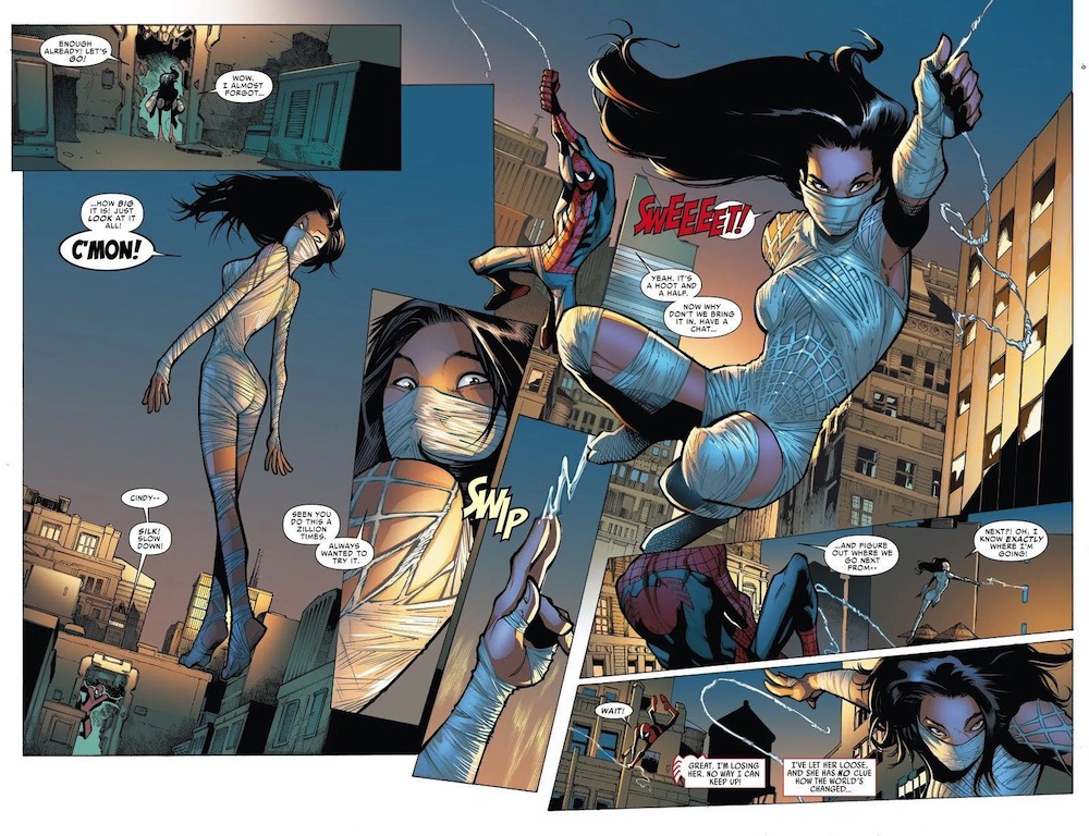 Silk a fait sa première apparition en 2014 dans le comics « The Amazing Spider-Man #4)
