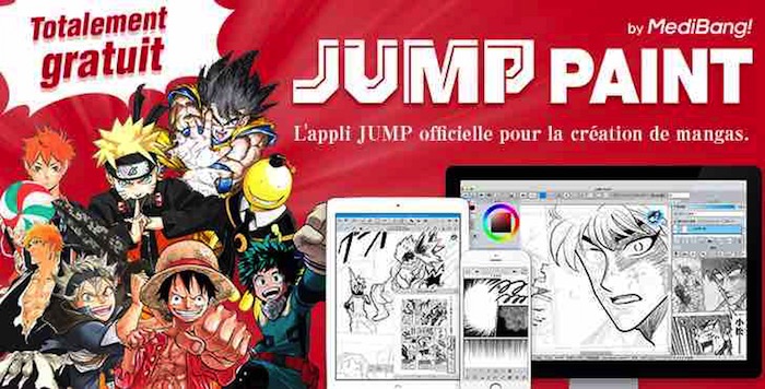 Jump Paint est une application de création manga utilisable par tous, disponible sur PC, smartphones, tablettes et ainsi de suite. Elle est gratuite d’utilisation et remplie de services et contenus des auteurs de Jump et du service éditorial de Weekly Shonen Jump pour vous apprendre à créer un manga. Elle est disponible en neuf langues, et notamment en anglais et en français.
