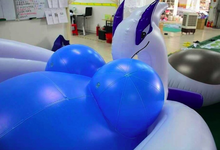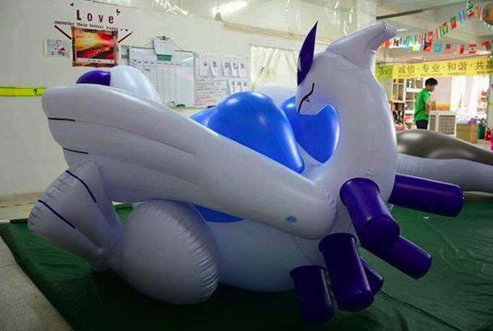 Suprême infamie pour bon nombre de fans de Pokemon: le fabricant de jouets « Guangzou Hongyl » a crée un Lugia gonflable. Rien de bien neuf, me direz-vous… Attendez, regardez mieux: