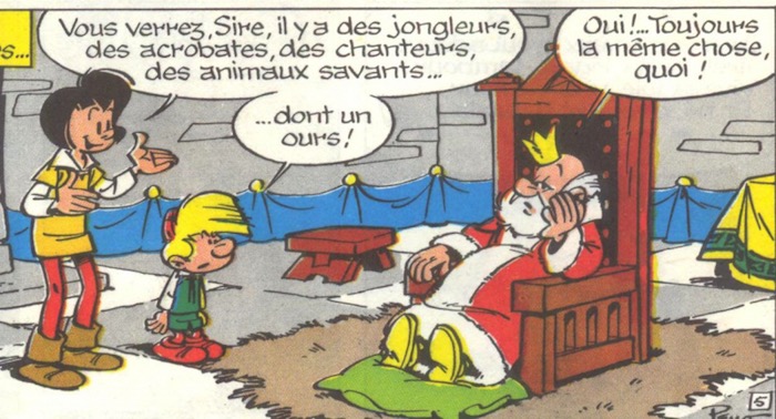 Certains puristes râlent un peu, car le petit Roi n’a jamais été déprimé en présence du schtroumpf dans l’oeuvre de Peyo. Certes, mais l’esprit de l’oeuvre est pourtant bien présent, non? Soit, chacun jugera.