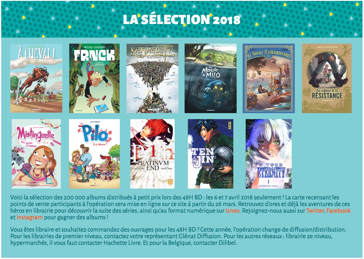 MàJ le 03/04/48 - Les 48h BD auront lieu les vendredi 6 et samedi 7 avril 2018, partout en France et en Belgique. En France certainement! En Belgique par contre… :(