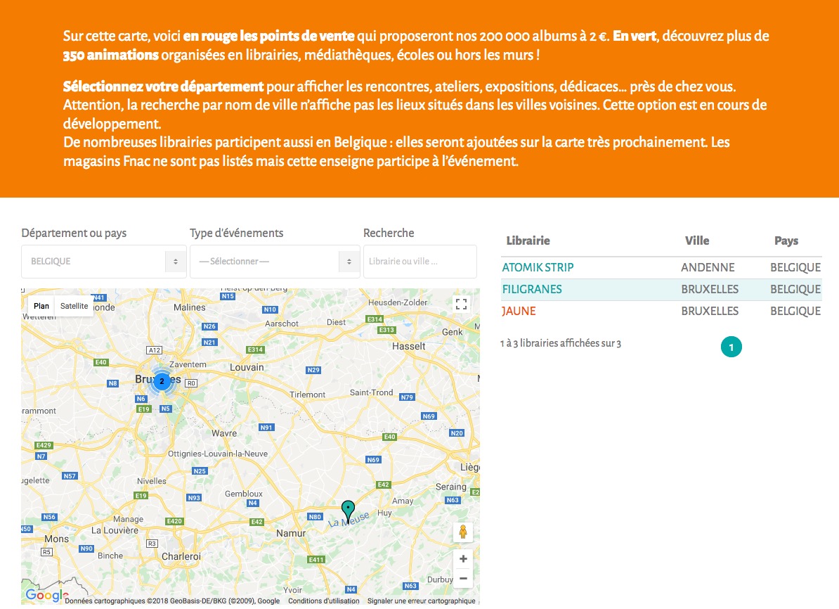 3 (trois) adresses seulement, dont UNE (1) seule qui proposera les albums à 2€ (Jaune, à Laeken)???