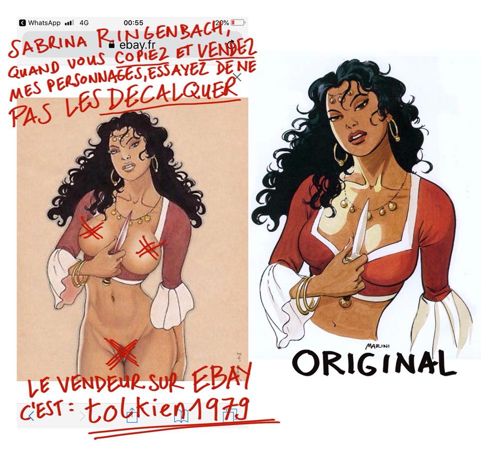 Mais ici, le vendeur en fait un vrai fond de commerce, en mettant en avant que c'est un "hommage à ..." L'auteur du Scorpion, du Gipsy ou encore des Aigles de Rome s'insurge contre ce type de pratiques: en quoi une reproduction erotico-arrangée est un "hommage" ?