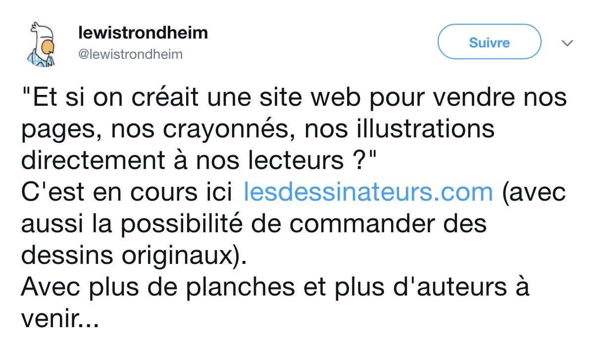 L'auteur de bandes dessinées Lewis Trondheim a annoncé la création du site sur Twitter, en promettant plus de planches et plus d'auteurs dans les semaines à venir :