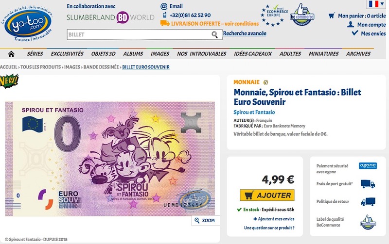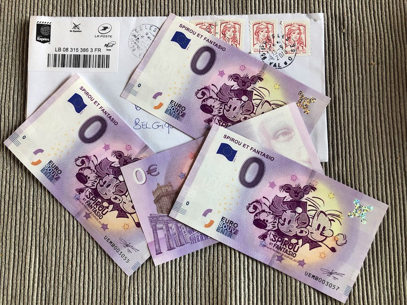 Mi-Août, en grand fan de Spirou et Fantasio, je tombe en pâmoison devant une publicité présentant un billet de banque à l’effigie de « vous savez qui » et me décide d’en acheter 2 pour ma collection personnelle. (oui, le collectionneur peut parfois sembler dingue au plus commun des mortels!)