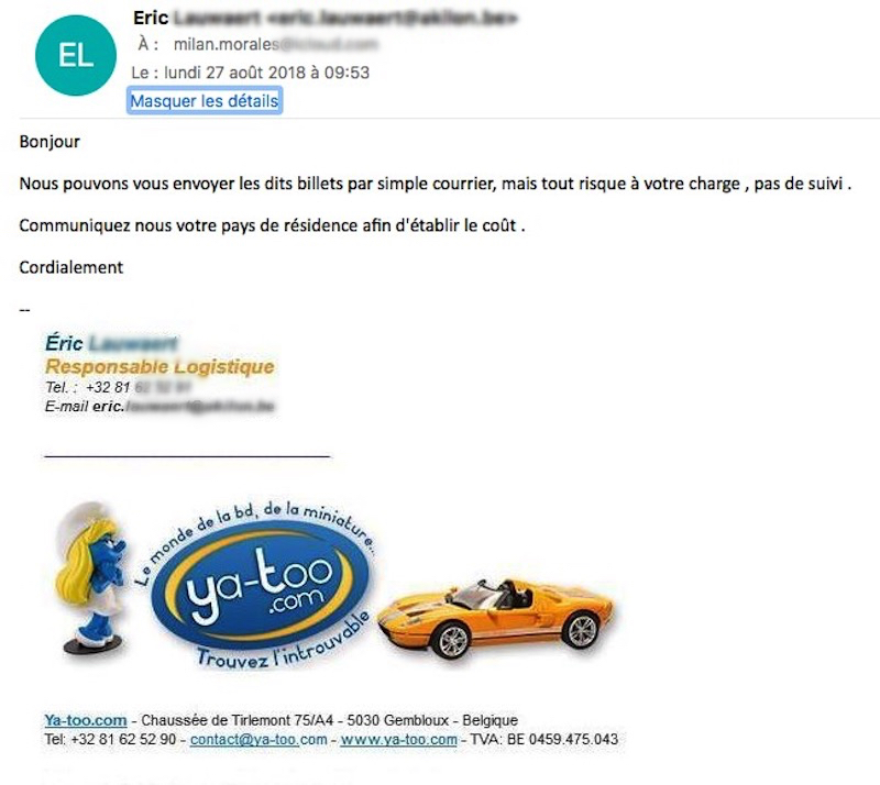 Des frais d’envoi prohibitifs avec un suivi du client pareil, Ya-too, vous avez méchamment foiré!