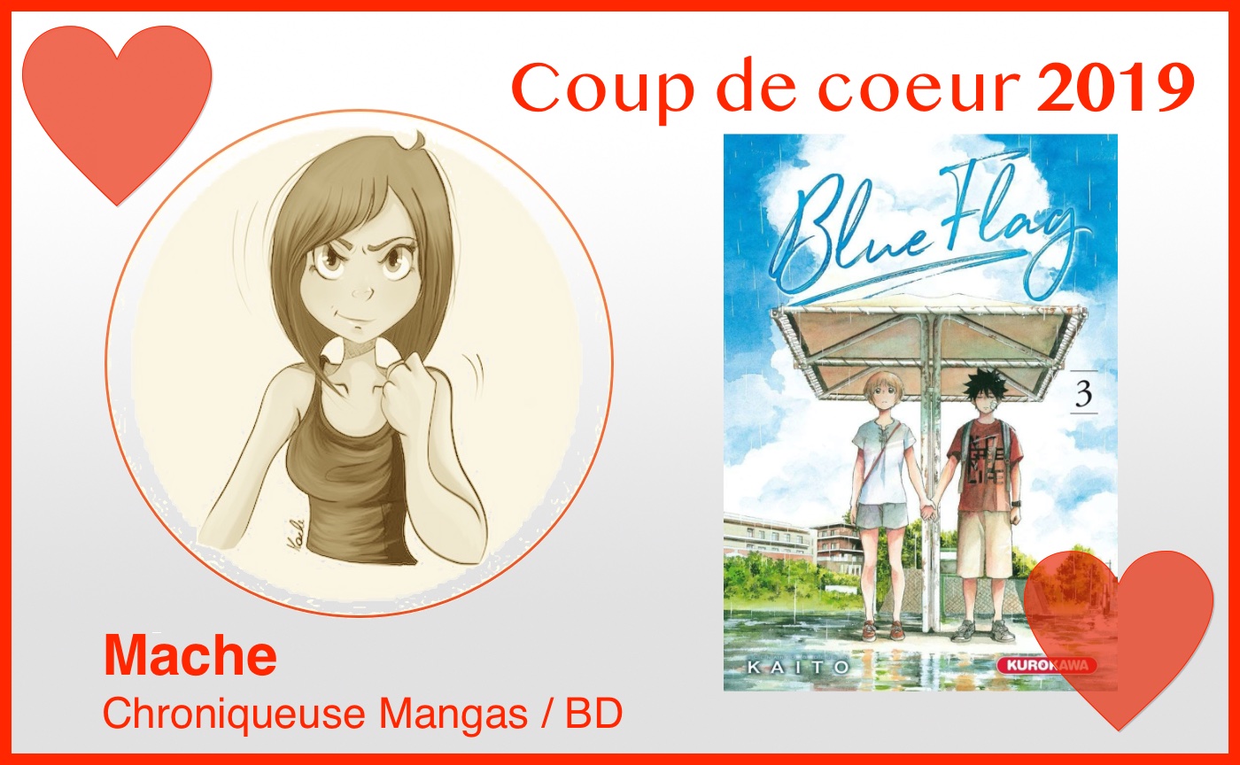 Et parmi les centaines de mangas qu'elle a lu cette année, Mache a jeté son dévolu sur la série "Blue Flag", de Kaito (paru chez Kurokawa)!Cliquez sur cette image pour en savoir plus...