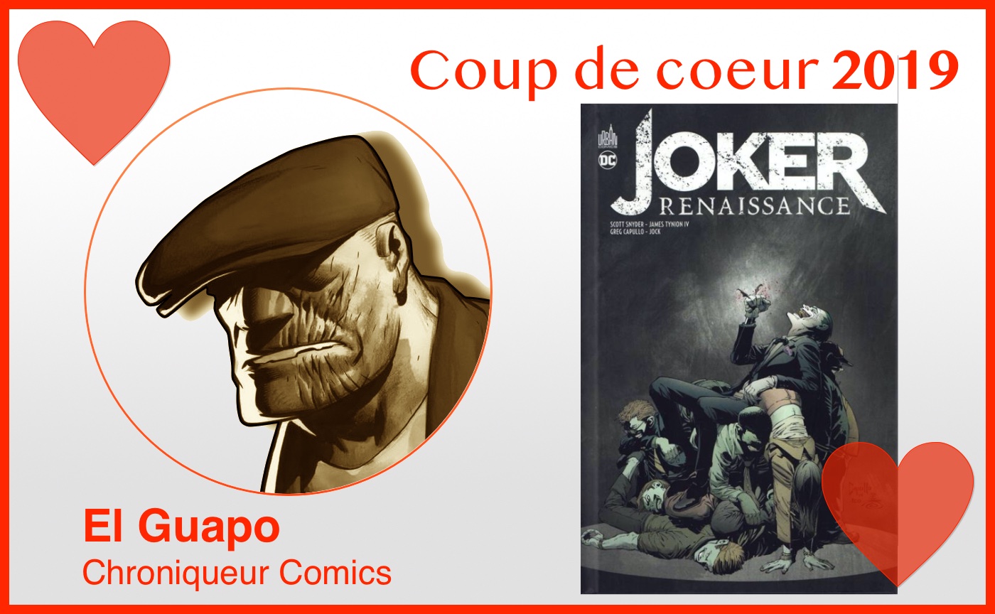 Et parmi les centaines de mangas qu'elle a lu cette année, El Guapo a jeté son dévolu sur la série "Joker Renaissance", issu des plumes de Scott Snyder & James Tynion IV, mit en images par une kyrielle de dessinateurs dont Greg Capullo & Jock (paru chez Urban Comics)Cliquez sur cette image pour en savoir plus...
