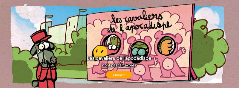 Trois cavaliers sans peur (sauf pour un) et sans reproche (sauf pour le même) partageant le même objectif : s'amuser. Le plus possible en se faisant gronder le moins possible. Et pour cela, ils peuvent compter sur leur imagination, leur détermination et une bonne part de malchance ! Aucun commun des mortels ne survivrait longtemps dans les aventures des cavaliers de l'apocadispe qui se prennent régulièrement des gamelles mémorables ! Ça commence par un simple cours en classe, une visite au musée, une balade en forêt ou un voyage en car... et tout devient très vite hors contrôle.