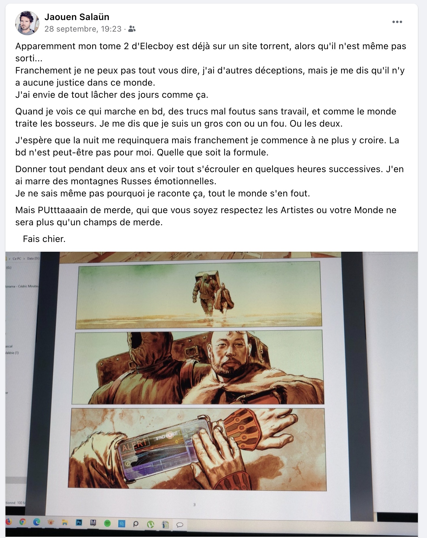 C’est sur sa page personnelle que l’auteur s’est livré sur cette triste découverte :