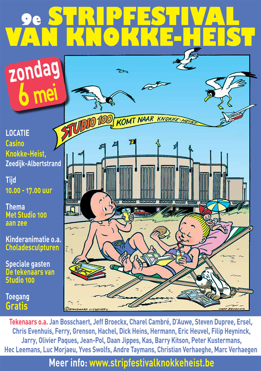 Le thème est ‘Met Studio 100 aan zee’ et différentes activités autour de Studio 100 seront organisées. Hormis une exposition dans la Bib Scharpoord, un stand de vente sera également aménagé au sein du festival. Marc Sleen, icône de la BD flamande, J-P Talbot, l'acteur du premier film de Tintin et la chanteuse Cendrine Ketels seront présentés au public.
