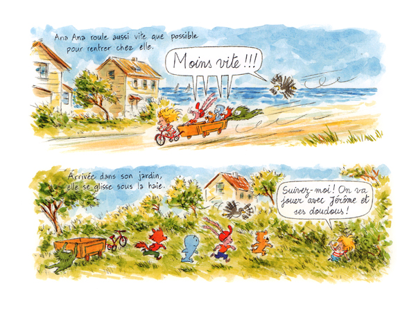 Petite soeur du célèbre Pico Bogue, Ana Ana est une petite fille astucieuse, vive et rigolote. Elle vit de grandes aventures avec ses doudous chéris : Touffe de Poils, Grizzou, Pingpong, Zigzag, Goupille, Baleineau. Tel un chef d'orchestre, elle dirige tambour battant cette petite troupe joyeuse qui la suit dans ses idées ou ses bêtises les plus fantaisistes.