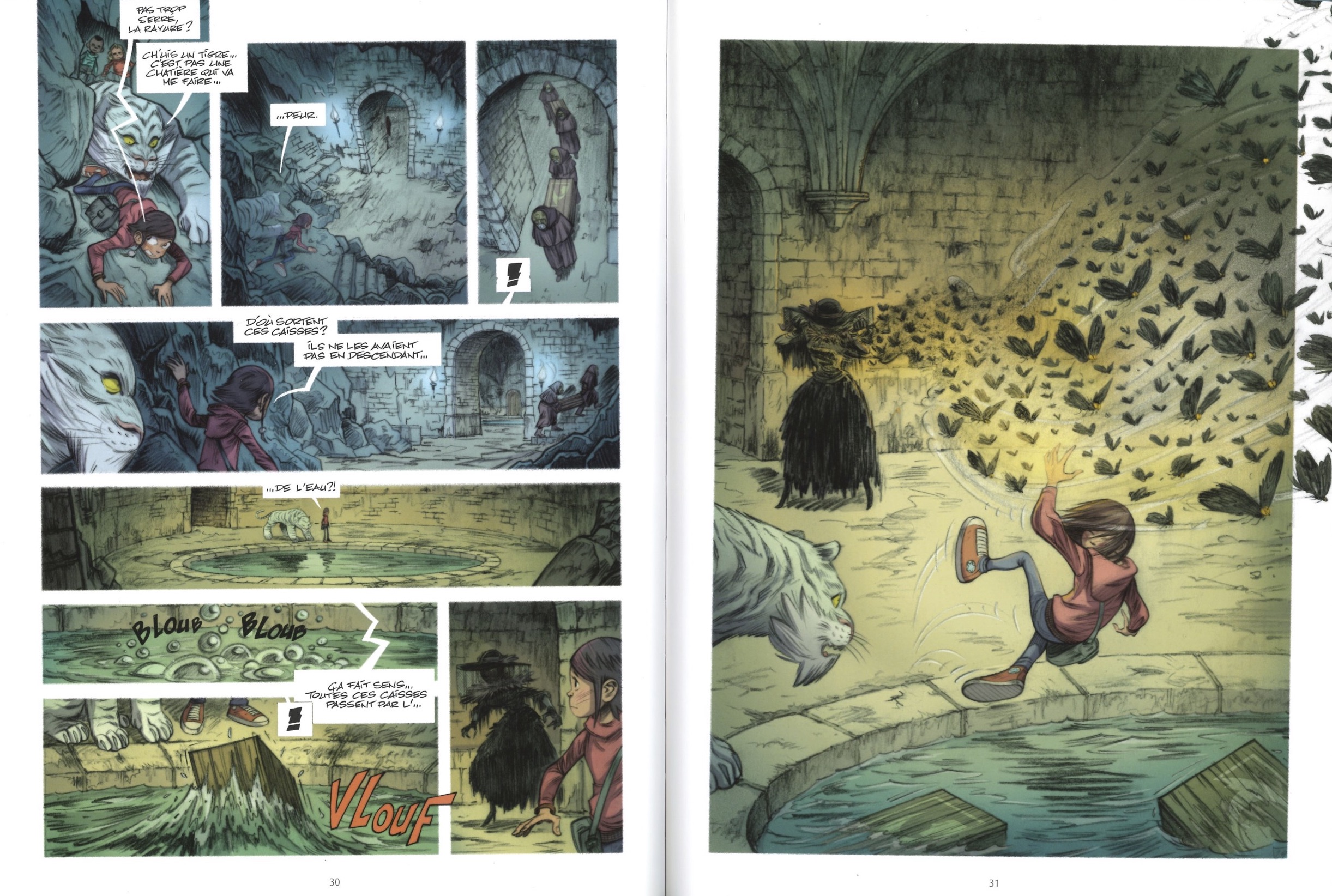 Ce qui l’est un peu moins -et c’est le seul bémol à cet album- est le chapitre final, beaucoup trop verbeux ; les explications fusent en un long flot intarissable. Certes elles sont nécessaires, mais j’ai trouvé ce dernier acte trop lourd ; il déséquilibre quelque peu l’œuvre, la rendant donc d’un coup indigeste pour les plus jeunes lecteurs…. Dommage !
