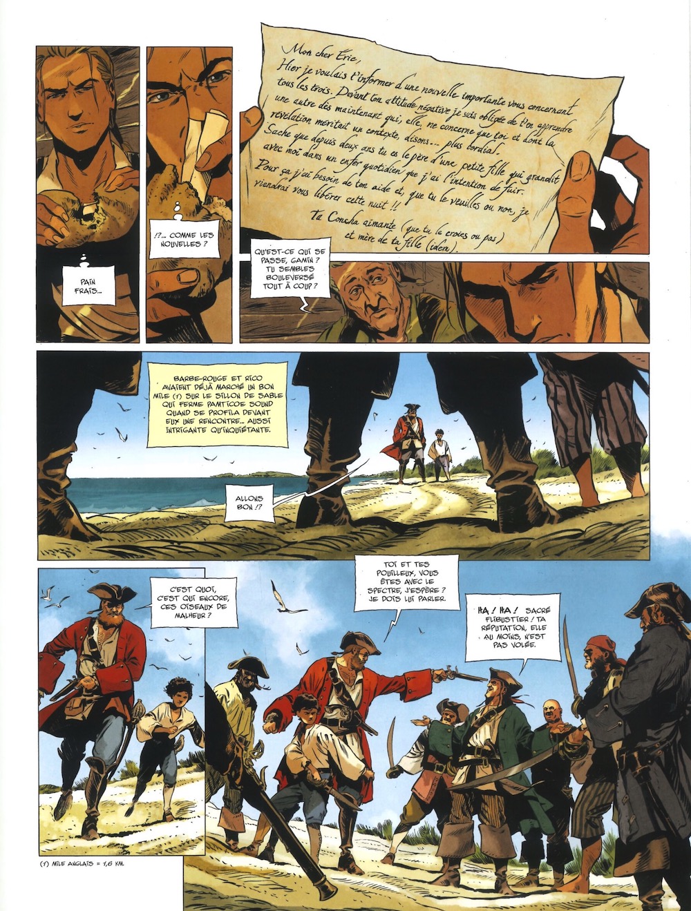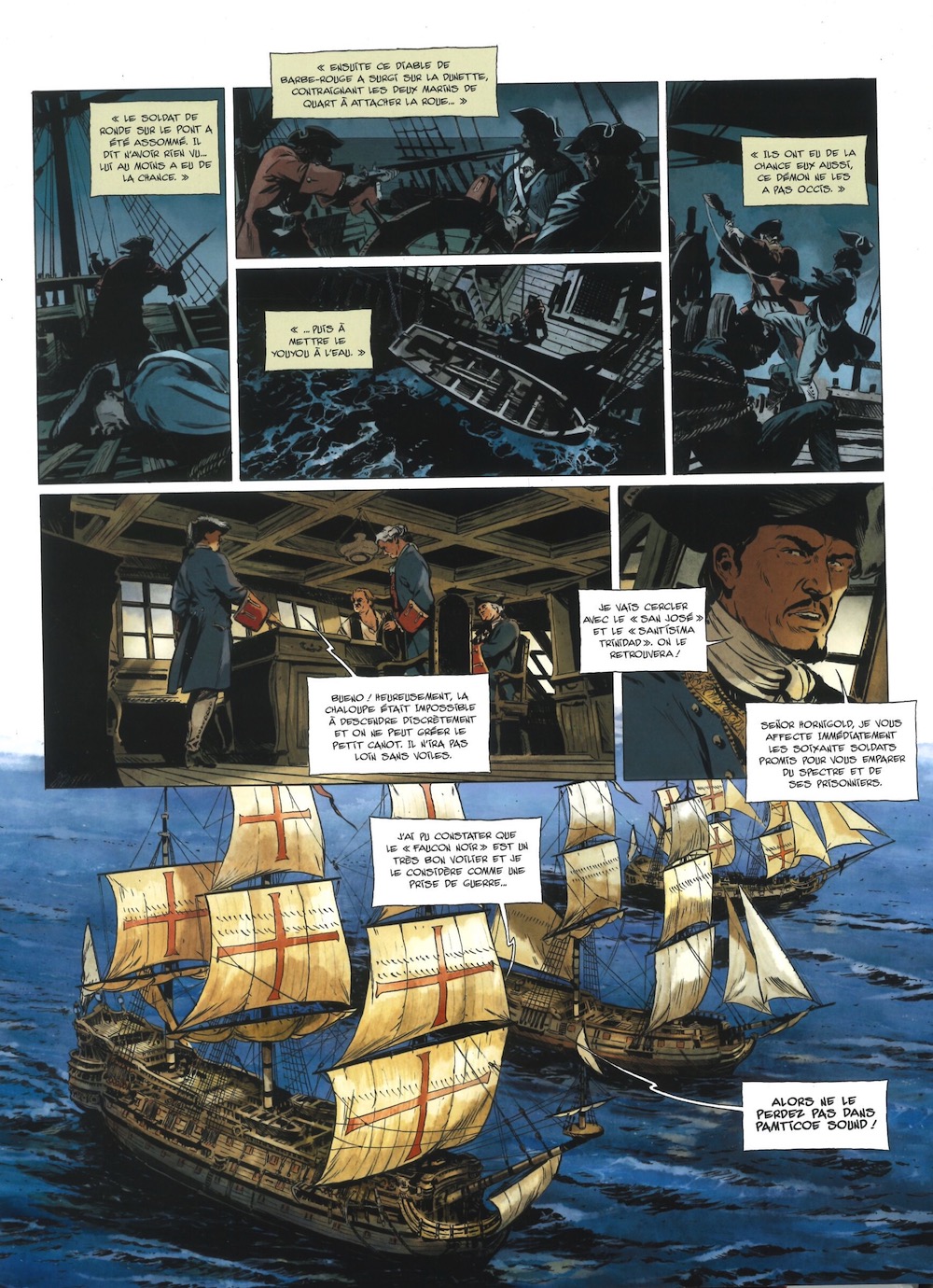 L’histoire donc tient totalement ses promesses, avec une évasion accompagnée d’une double alliance contre-nature qui ne peut que mal se terminer pour l’une des 3 parties ! Trahisons et jeux de dupes à tous les étages, coups-bas, duel et retournements de situations…. Ces 2 fieffés bougres aux commandes de ce nouveau « Barbe-rouge » ont diablement bien cerné l’essence même des aventures du célèbre démon des Caraïbes !