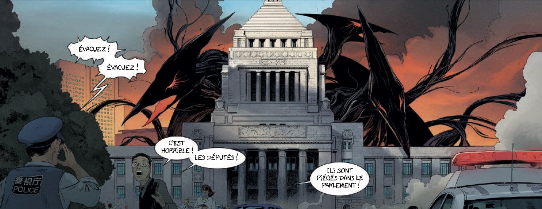 L’un des premiers éléments fort de ce long récit de 130 pages est le discours du Général Yros d’Arkhen devant les parlementaires japonais : l’analogie qu’il emploie en comparant la situation de son peuple et l’épopée de « notre » Christophe Colomb auprès des tribus indiennes est très bien construite et on se rend compte que ce nouvel adversaire sera redoutable pour nos héros.
