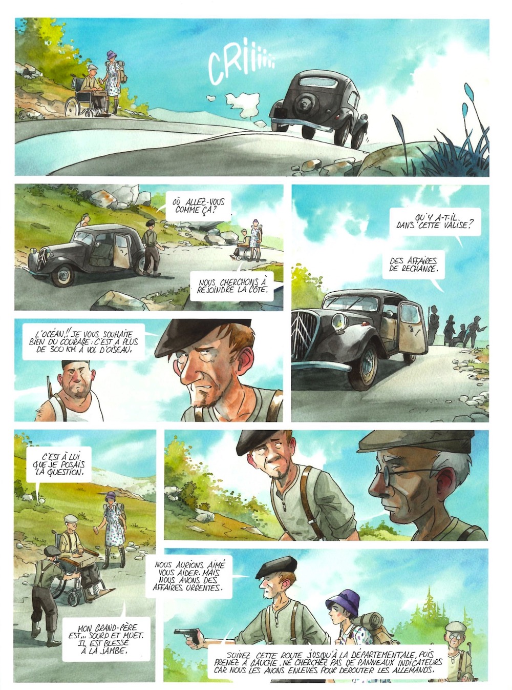 Cette histoire est un diptyque complètement envoûtant par sa beauté graphique et sa richesse dans l’écriture. On suit de près un Road Trip transgénérationnel qui avance à la vitesse de la chaise roulante de Paul sur les chemins de la Corrèze : c’est lent, mais on en prend plein la vue et on recharge à plein pot notre palpitant de belles émotions…