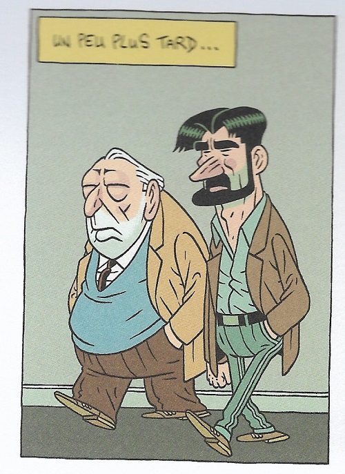 Mais que les fans se rassurent, la couverture ne laisse pas planer le doute sur l’esprit déjanté de notre dessinateur. Mamy n’a plus toute sa tête ? Sur la couverture, elle a une hache en main et c’est le personnage au sol qui n’a plus la sienne, de tête… 😊