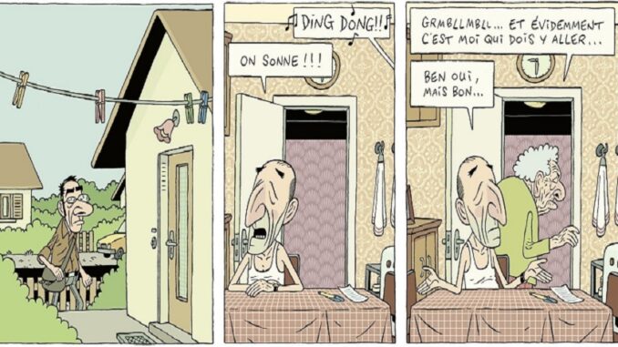 En partie autobiographique, l’album s’inspire bien de faits de sa vie de tous les jours, mais ne prenez pas pour argent comptant ce qui s’y trouve… Notre héros est bien dessinateur de bande dessinée et sa grand-mère soufre aussi de la maladie d’Alzheimer, le reste n’est que pure spéculation sortie de l’esprit de notre dessinateur. Non il n’a pas une double vie pour cacher les meurtres commis par sa grand-mère qui prend tous les visiteurs inopportuns de sa maison (employé du gaz ou d’Engie) pour des agents de la Gestapo ; non il ne trompe pas sa femme ; et oui il mène une vie ordinaire de dessinateurs de bandes dessinées.