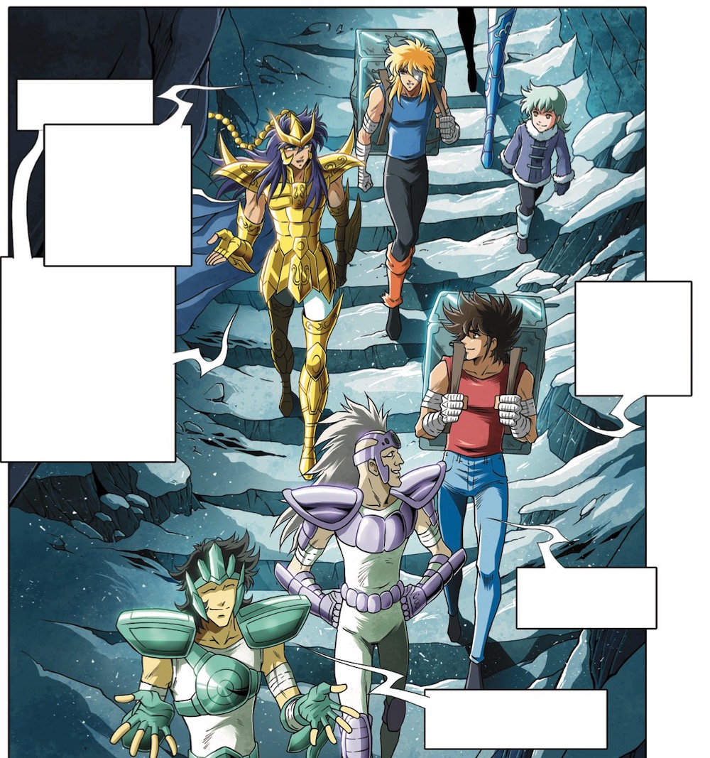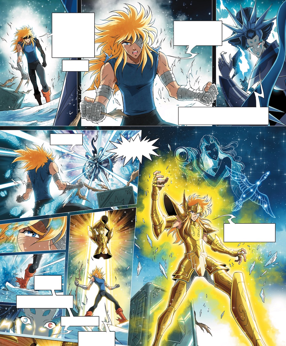 Ainsi, si la saga d’Asgard n’y existe pas du tout, il y a néanmoins un mini-arc -entre la bataille du sanctuaire et l’Arc Poséidon- où l’on découvre Hyôga aux prises avec les Blue Warriors, chevaliers du royaume. Ce gros chapitre est totalement inconnu du fan de l’animé lambda.