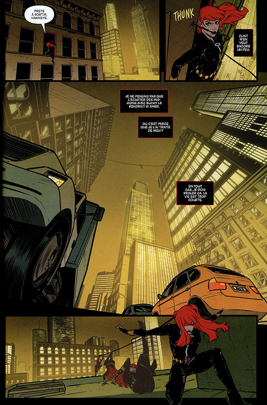 Black Widow bénéficie déjà d’une image forte et crédible et semble ne pas devoir jouer des coudes pour s’imposer dans son univers. La scénariste utilises d’ailleurs beaucoup sur cette aura et s’en amuse pour effrayer les ennemis de Natasha Romanoff. Le scénario est malin et nous balade un petit moment dans des zones de doutes et de certitudes.