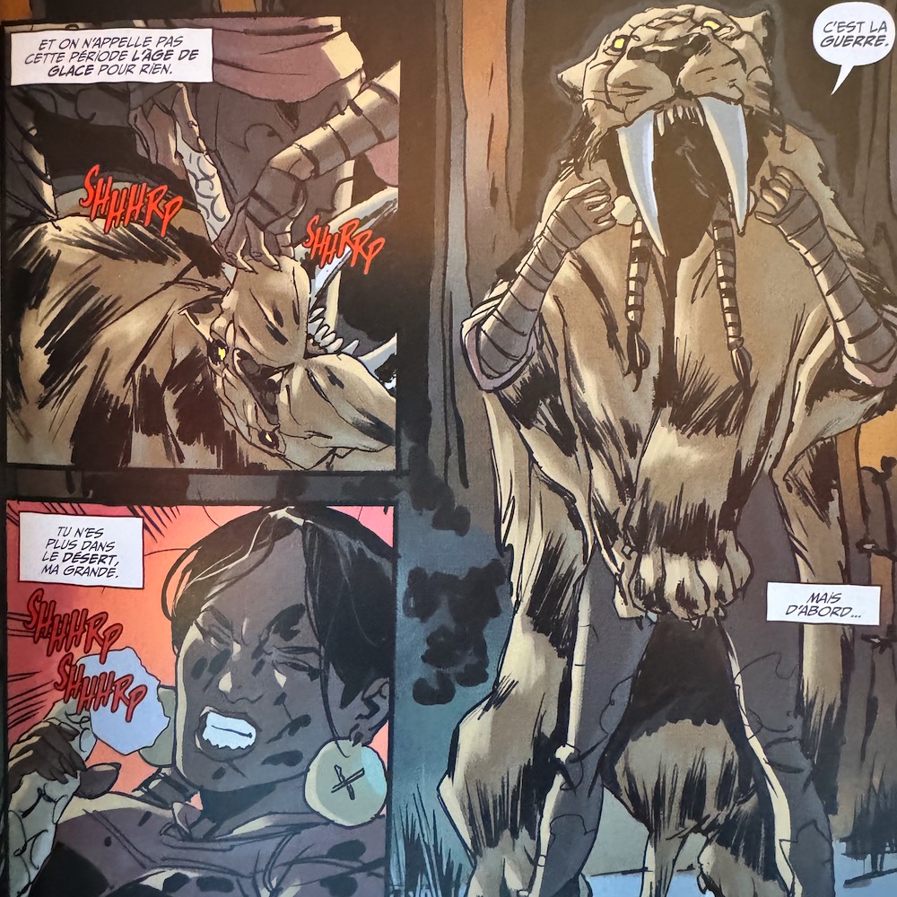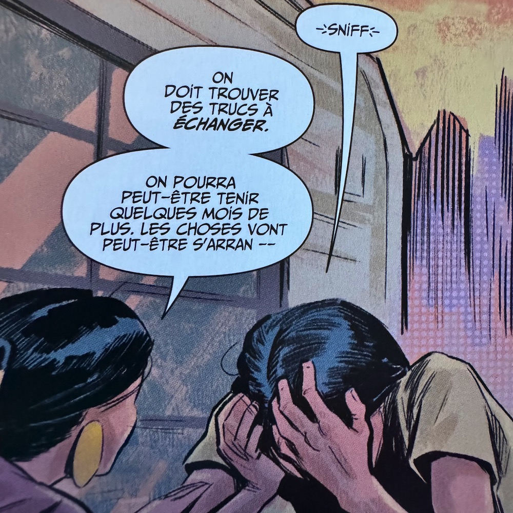 Les deux lignes temporelles ont des décors bien détaillés, du paysage rocheux désolé d'une Terre mourante aux ponts des navires de Christophe Colomb, ce qui rend la lecture totalement immersive.