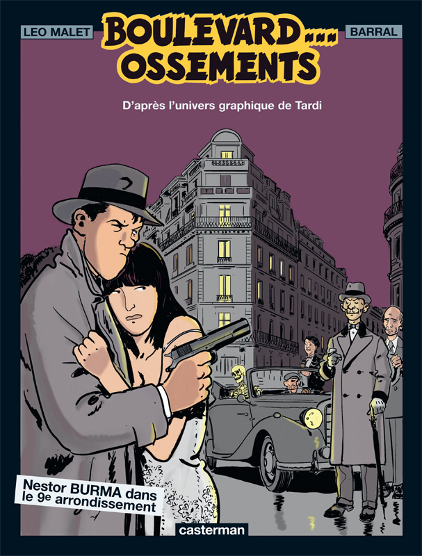 Boulevard…Ossements est la huitième adaptation d’un roman de Léo Malet mettant en scène son détective Nestor Burma, une série débutée par Jacques Tardi, personnage incontournable dans la bande dessinée Franco-belge. Après avoir passé le relais à Moynot, celui-ci a finalement décidé de passer son tour et le choix des éditions Casterman s’est arrêté sur Nicolas Barral, plutôt surprenant puisque ce dessinateur excelle dans la parodie avec le burlesque Baker Street où Sherlock Holmes est aussi stupide que Rantanplan, ainsi que l’excellente parodie du classique Blake et Mortimer : « Philip et Francis », meilleur hommage à l’œuvre de Jacobs, n’en déplaise à Sente ou autre Van Hamme…