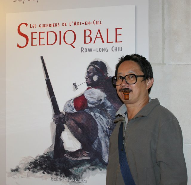 Un jour, un jeune garçon de la ville – Row-Long-Chiu - alla muser dans la montagne et rencontra une belle aborigène. Il en tomba amoureux et finit par l’épouser. Il fit connaissance avec le peuple Seediq et son histoire. C’est ainsi qu’est né Seediq Bale (Les Guerriers de l’arc-en-ciel), l’œuvre d’une vie, avant tout une bande dessinée d’une force incroyable qui mérite sa place aux côtés de jalons BD comme Maus, Habibi, une Vie chinoise… Une bande dessinée qui sort largement de son cadre et devient oeuvre à part entière. Row-Long-Chiu, en artiste multimédia, est parvenu à l’imposer à Taiwan où il l’a décliné sous forme de documentaire, de série télé, livres pour enfants, dessins animés, film (produit par John Woo, en tant que conseiller artistique) un tel succès que la BD produite en 1990 est rééditée en version augmentée de pages couleurs et de commentaires. Cette répercution finit par franchir les frontières. Elle est primée au festival BD d’Alger en 2011 et en 2012 au festival de Chambéry et s’expose à Angoulême. C’est là que Dominique Véret, éditeur responsable de la section manga de Delcourt, le remarque. Amoureux de tribus primitives, amérindiens ou asiatiques, il décide de la publier, guidé par son enthousiasme, se doutant bien que cela ne fera pas un carton dans les ventes mais qu’il tient entre les mains un pavé de la BD. C’est ainsi que voit le jour en français Seediq Bale (Les Guerriers de l’arc-en-ciel), un beau livre qui se lit comme un manga, à l’envers, une BD noir et blanc augmentée de superbes pages couleurs et de nombreux textes explicatifs. Le tirage est modeste mais vu l’ampleur de l’œuvre il est certain qu’il augmentera exponentiellement.