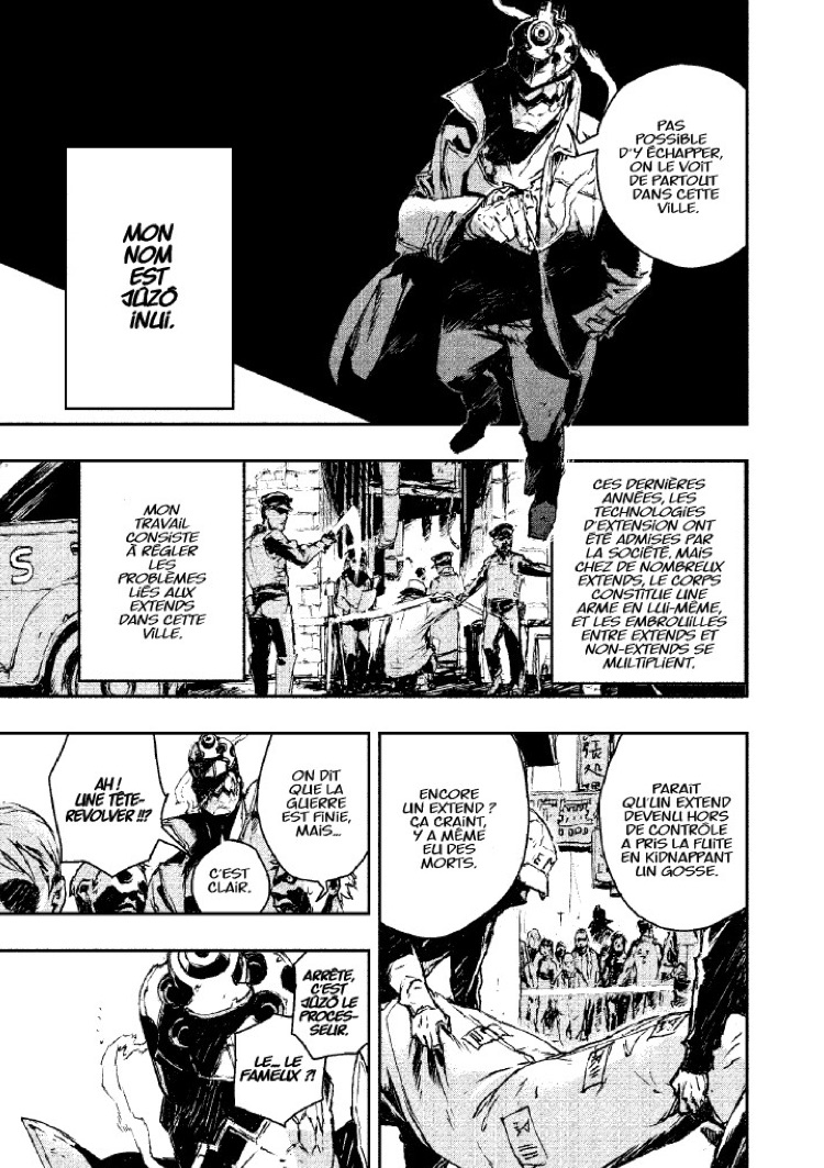 Un jour, en rentrant chez lui, Jûzô retrouve son appartement dévasté. Un extend monstrueux se cache à l’intérieur et lui demande de sauver un garçon… L’over-extend accepte la mission ne pensant pas que celle-ci l’emmènera au cœur d’un véritable trafic d’enfants…