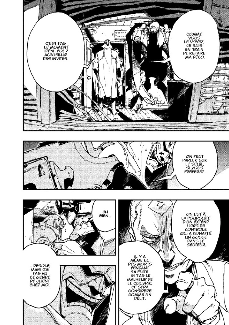 Le dessin quant à lui est vif et rapide dans le geste, les émotions et les attitudes de chacun des personnages sont bien rendues. Même si les décors sont peu nombreux pour laisser la place aux gros plans et aux scènes d’actions, ils plantent bien le monde dans lequel évolue notre héros.