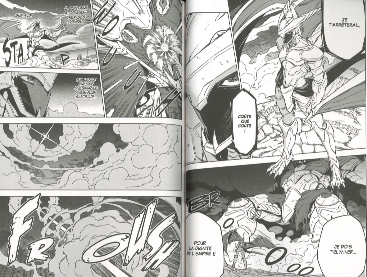 Emporté par sa soif inextinguible de pouvoir et de puissance, l’empereur sombre dans la mégalomanie la plus sombre et ne réalise même plus que les dommages collatéraux qu’il cause en opposant son arme ultime à Tatsumi touchent directement les habitants de sa capitale ! Au final, il ne restera qu’un sale gosse totalement immature pour sa fonction !