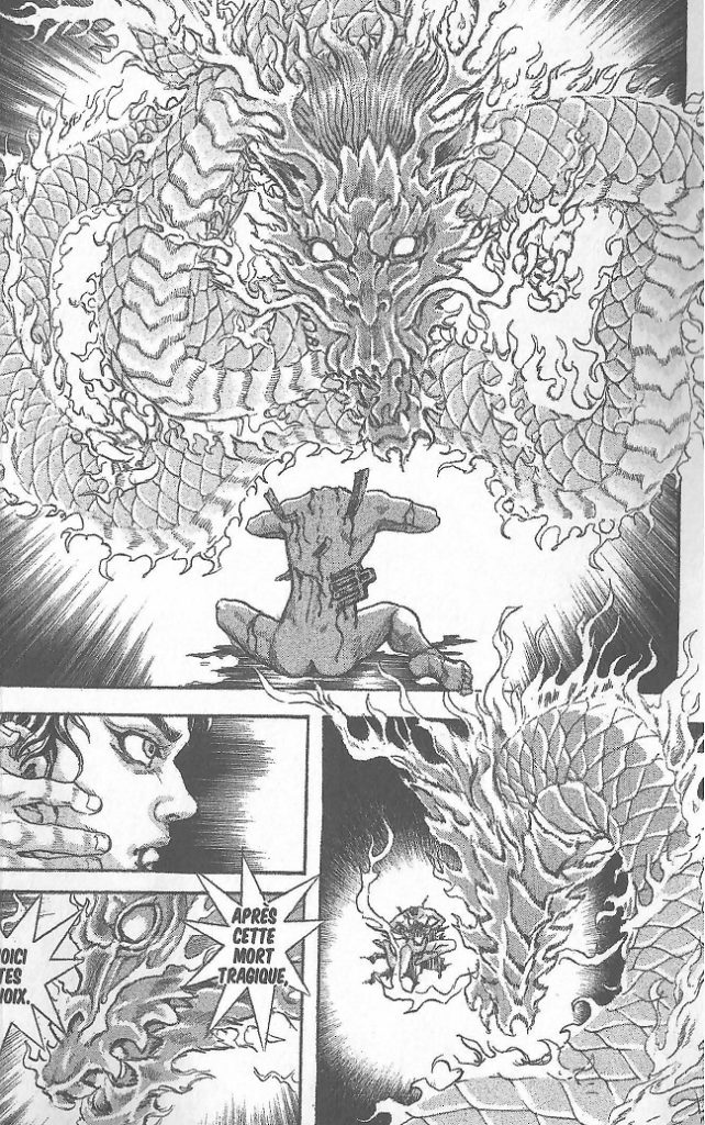 C’est ce qui m’a le plus surpris (enfin presque…) ! Mais comment ne pas penser à Berserk ? Un des personnages, Ren le proxénète, est réellement le portrait craché de Guts, le héros de cette série… Clin d’oeil ou pas ? C’est un dessin que j’aime beaucoup, il diffère des autres mangas et correspond parfaitement à cette ambiance de Japon médiéval héroïque et fantastique que l’histoire nous décrit.
