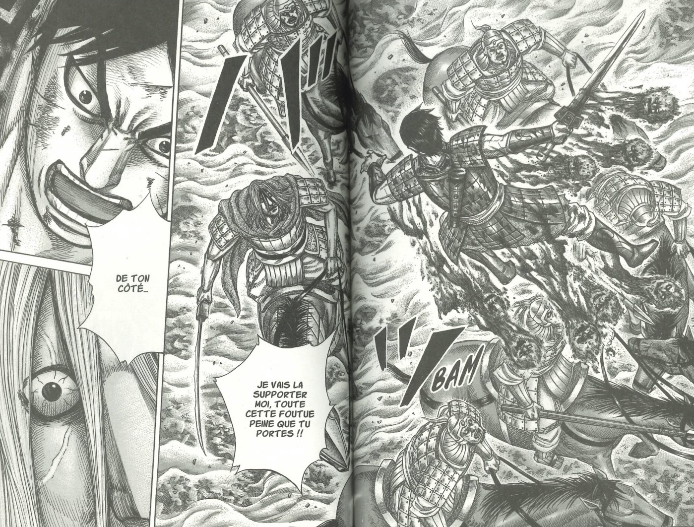 i la situation numéraire joue nettement en défaveur de Qin, un haut-fait sur ce gigantesque champ de bataille redonne courage aux soldats : l’unité Hi-Shin composée de 10 000 hommes vient de tuer le cruel général de Zhao, Mangoku ! Voilà un sérieux coup au moral des troupes de la coalition qui ont déjà perdu un autre général quelques heures plus tôt… Et dès l’aurore, les combats reprennent….