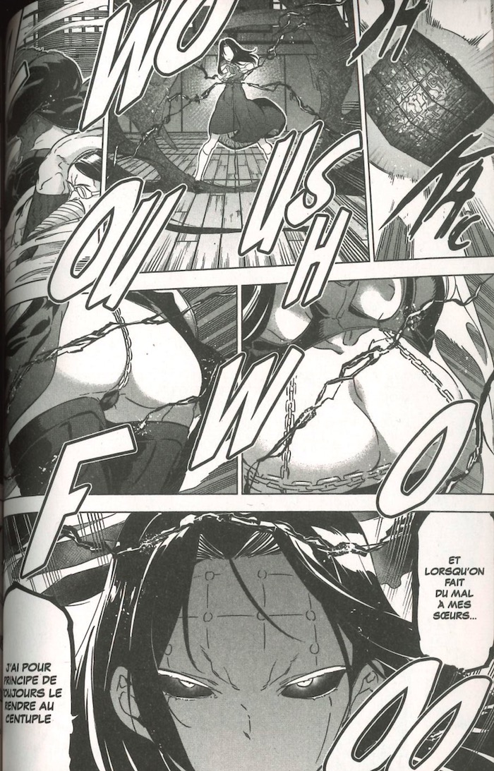 On retrouve les graphismes incroyablement dynamiques et actuels de Tetsuya Tashiro, dessinateur de Red Eyes Sword (et de sa suite Blue) avec des scènes de combats violentes et sanglantes.