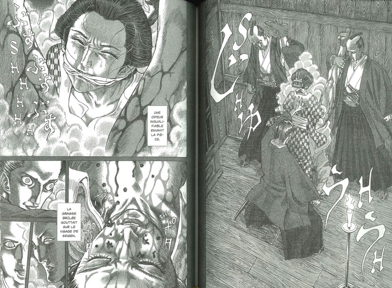 Le premier combat « d’exhibition » opposera Gennosuke Fujiki, manchot, mais doté d’une incroyable musculature dorsale à Seigen Irako, aveugle ayant le pied droit fendu en 2 ! Ces 2 guerriers, estropiés d’une vie sans cadeau, ont tous 2 un esprit guerrier aussi affuté que leur lame.